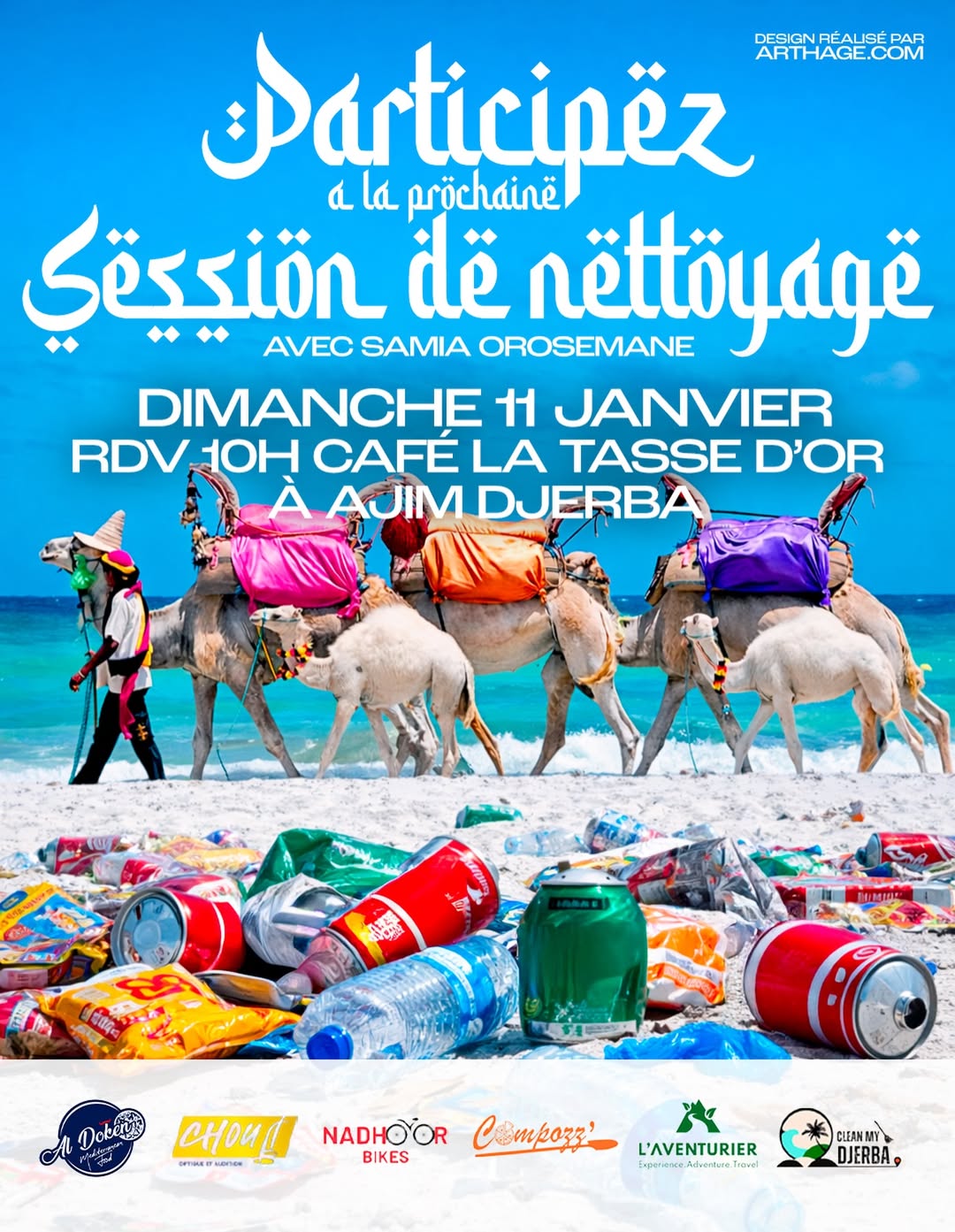 – der Verein Clean My Djerba, der sich für den Umweltschutz engagiert, arbeitet für dieses Event erneut mit der Künstlerin Samia Orosemane zusammen.